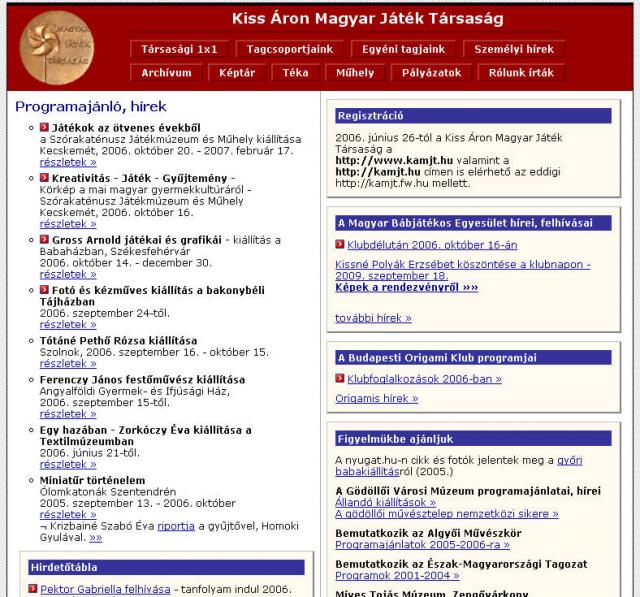 Kiss Áron Magyar Játék Társaság honlapja |