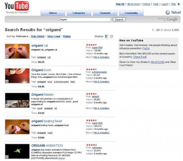 Origami a Youtube-on |